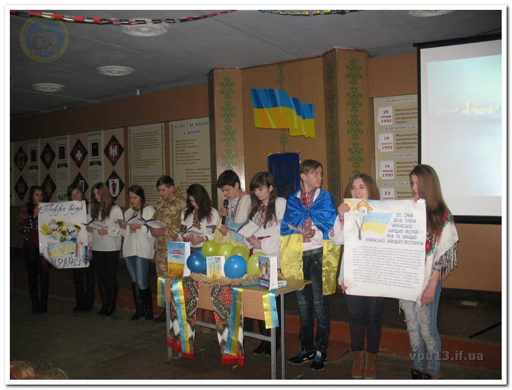 22.01.2015 відбулася загальноучилищна лінійка на тему «Нам берегти тебе, моя Вкраїно, і нам твою історію творить» - до Дня Соборності. Захід організувала викладач історії Басараб М.Г. Учні дізналися про історію виникнення свята, яке відзначається щороку 22 січня – в день проголошення Акту возз'єднання Української Народної Республіки й Західноукраїнської Народної Республіки, що відбулося у 1919 році.