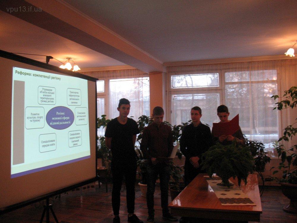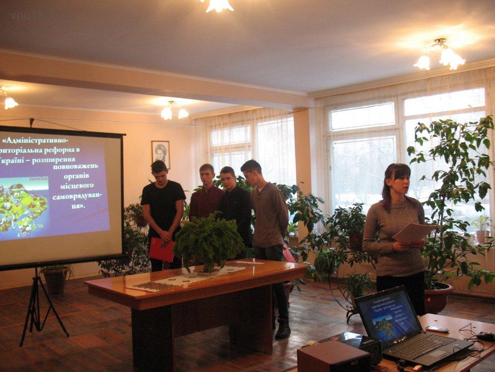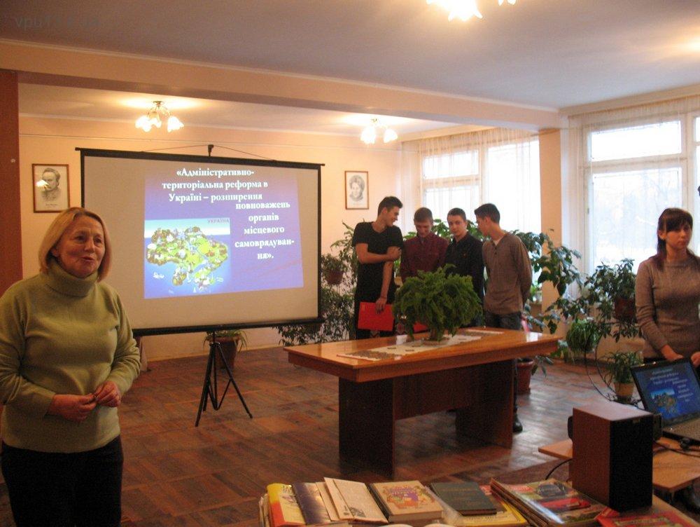 13.12.2016 в бібліотеці училища проведено круглий стіл на тему «Адміністративно-територіальна реформа в Україні – розширення повноважень органів місцевого самоврядування». Захід організувала та провела Вацеба Х.В. – викладач права.